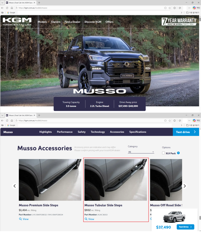 KGM REXTON SPORT/KHAN 렉스턴 스포츠/칸 튜블러 4인치 사이드스텝